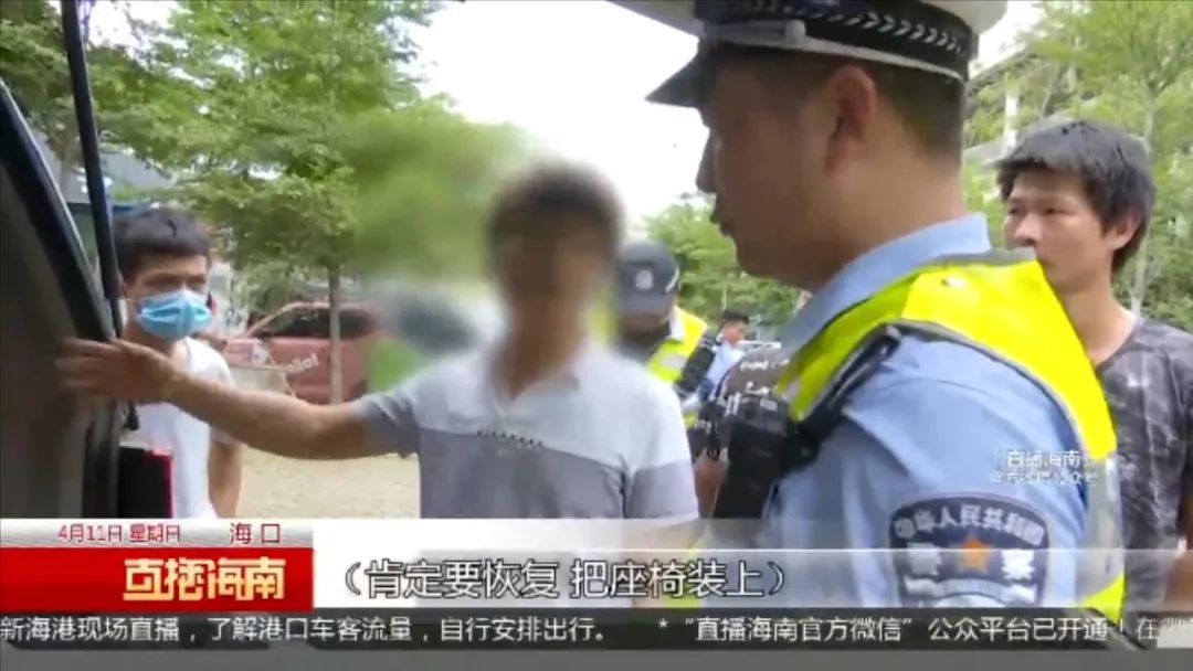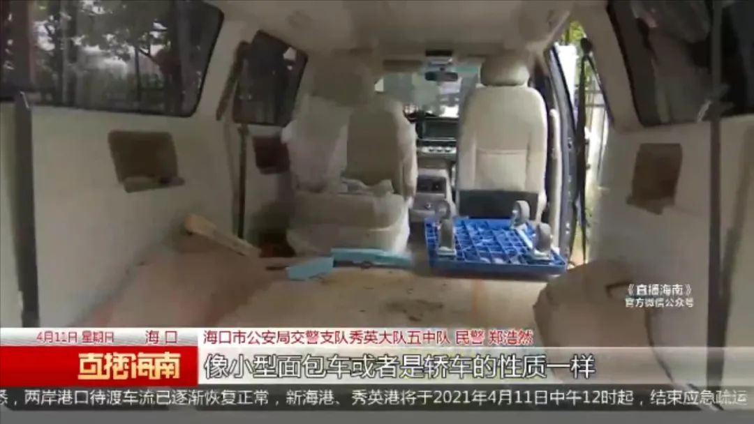 海口市公安局交警支队秀英大队五中队 民警 郑浩然:车门打开的话我们会看到车座是拆掉的,因为这种车不是封闭式货车是有车座的,像小型面包车或者是轿车的性质一样,他如果拆掉的话就属于非法改装。