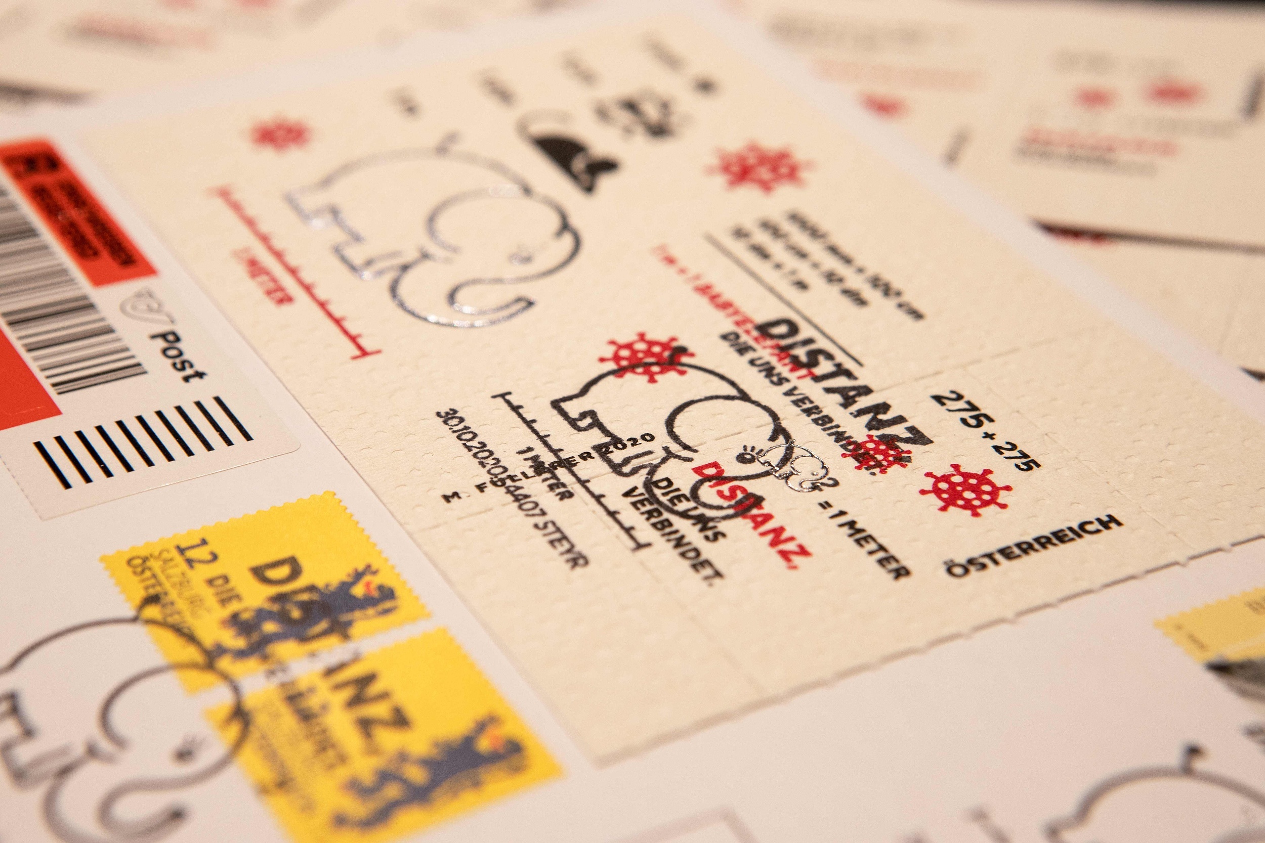 10月28日,奥地利维也纳,一名邮局工作人员展示厕纸新冠病毒(Covid-19)纪念邮票。人民视觉 资料图