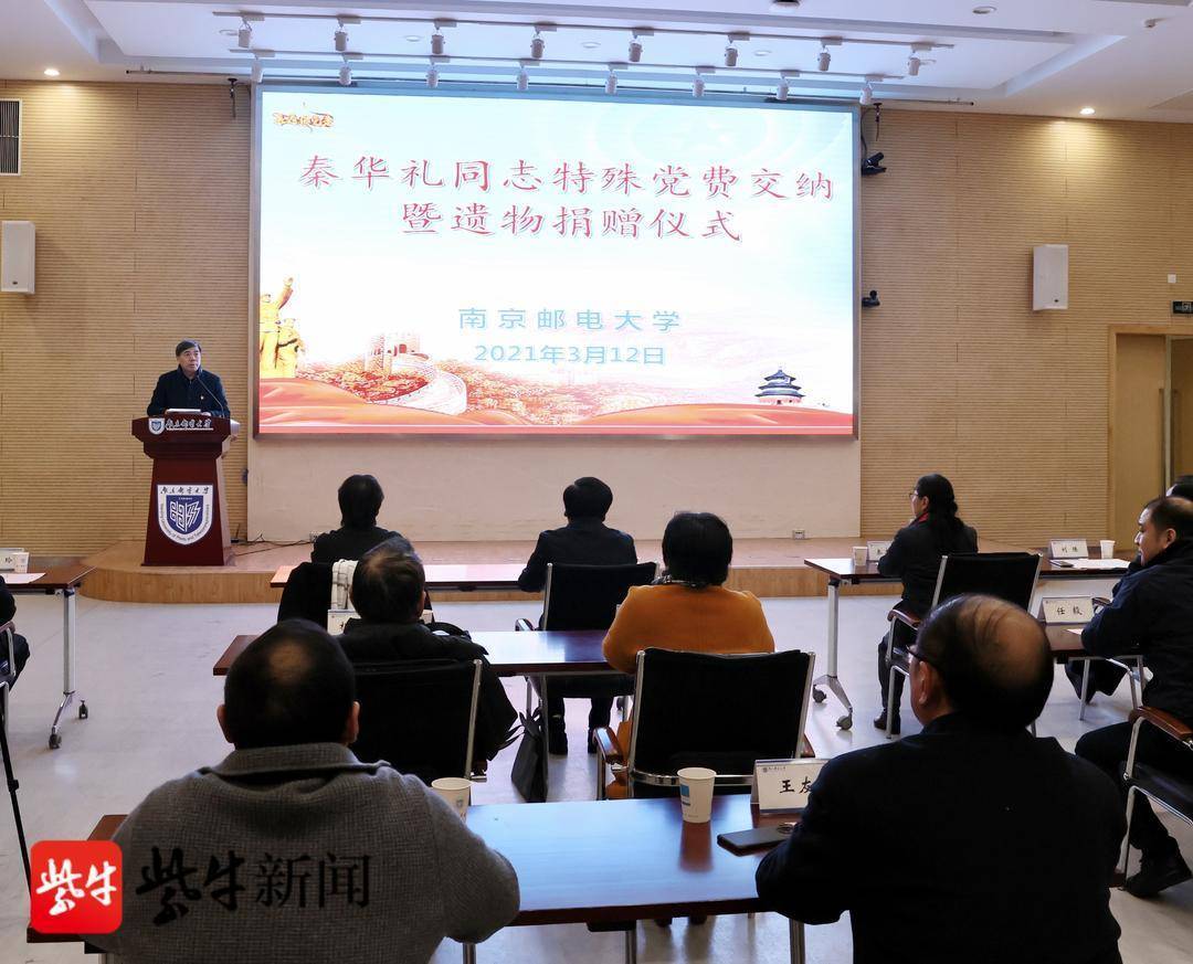 “这是父亲最后一次交纳党费了,也是他的遗愿,今天我替他完成了!”2021年3月12日上午,一场特殊的党费交纳暨遗物捐赠仪式在南京邮电大学举行——原南京邮电学院首任书记兼院长、老红军秦华礼的女儿秦志红将父亲生前工资卡里剩余的182294.21元悉数交给南京邮电大学党委组织部。