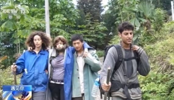 蒋伟:我们就发现两个应该是在成都读书的(以色列男孩),他们来搜救她们来了,我们就碰到了。所以那天下午是越来越轻松,开始是四个人 后来我们变成了六个人。