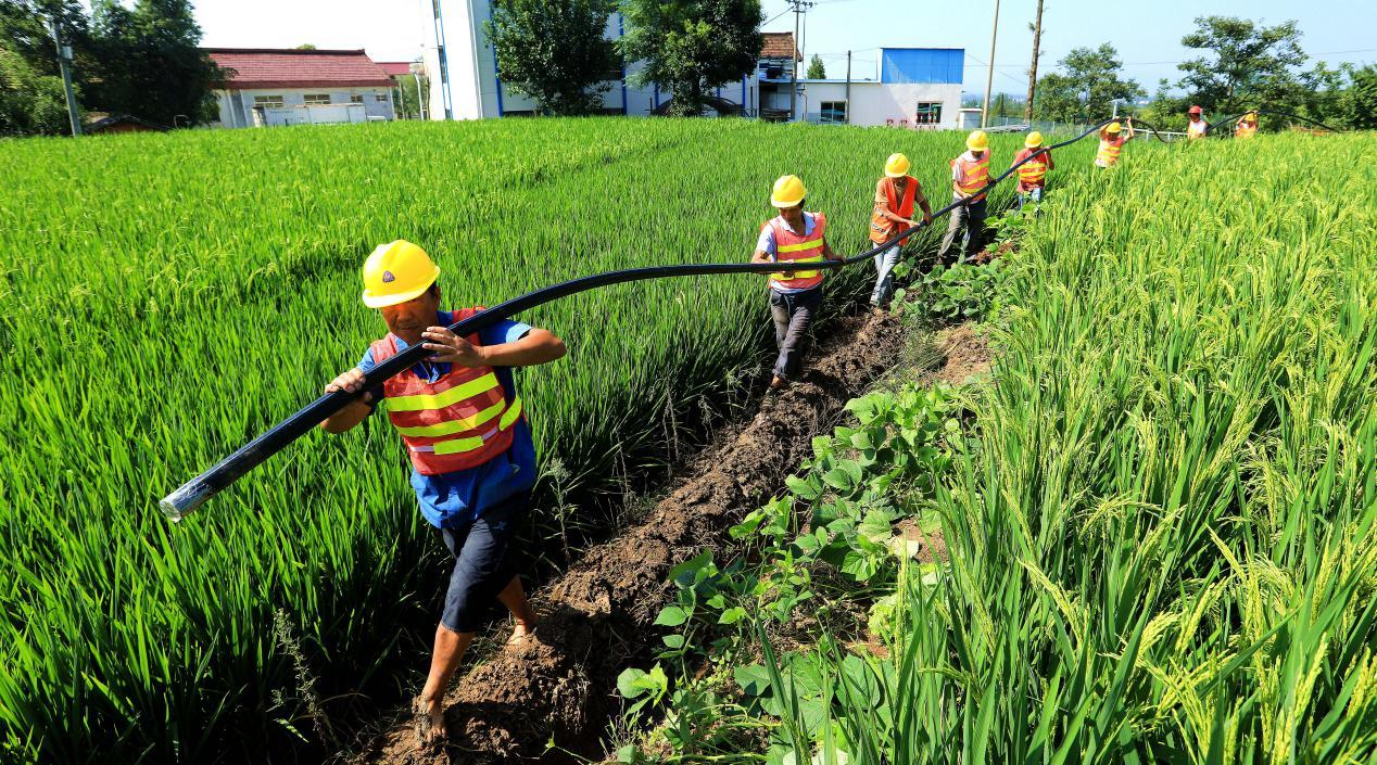 上图:在陕西省汉中市汉台区武乡镇吴庄村,施工人员铺设水管,为村民送来“放心水”。(崔建荣/摄)