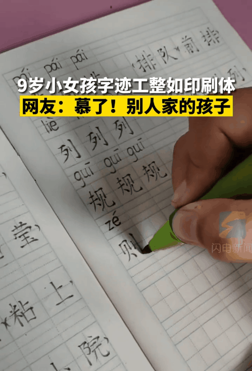 九岁女孩字迹工整如印刷体