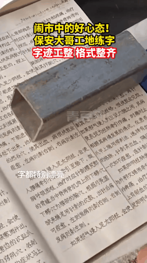 看到保安大爷正在练字