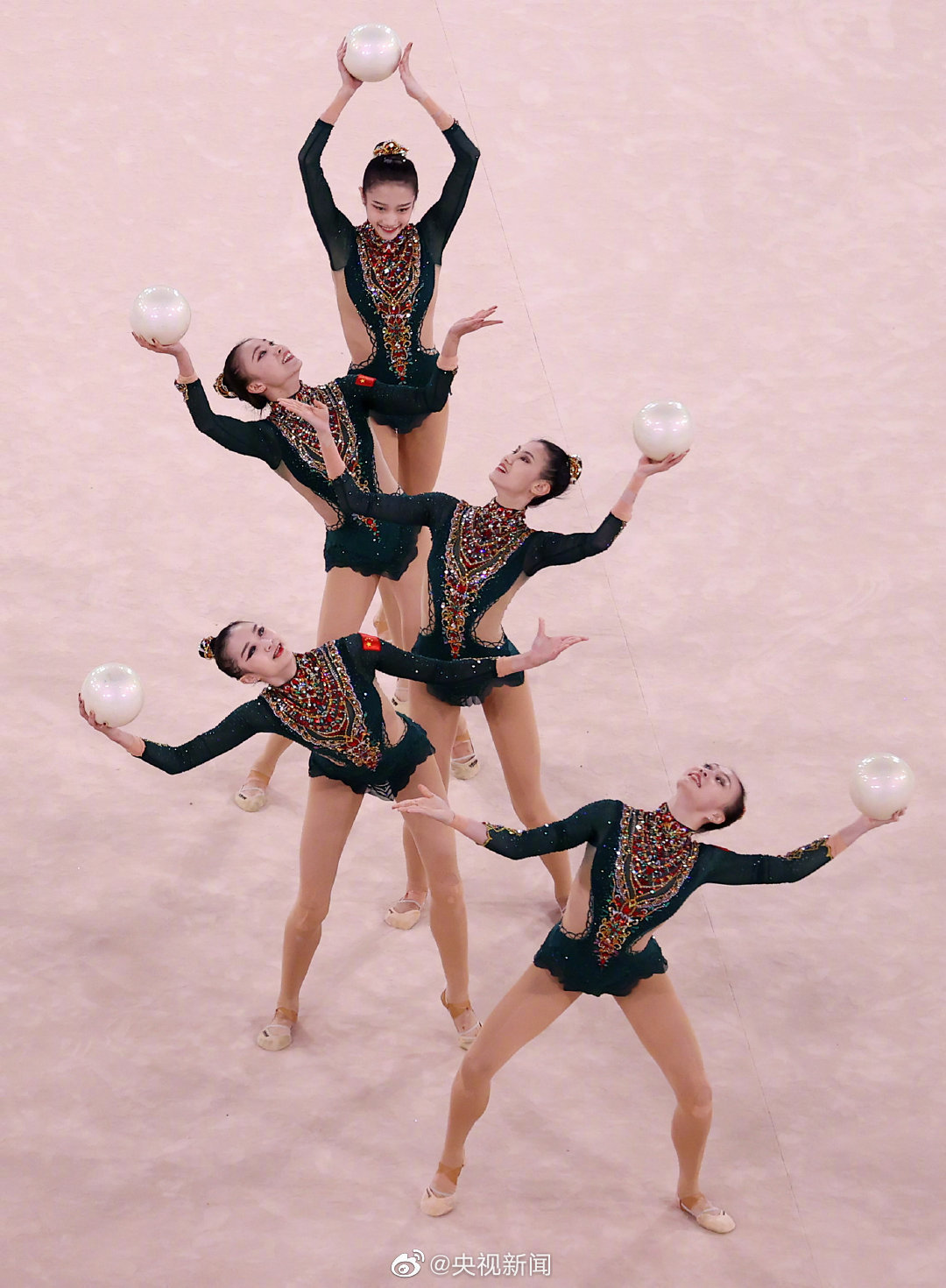 美!艺术体操中国姑娘5球主题是敦煌飞天