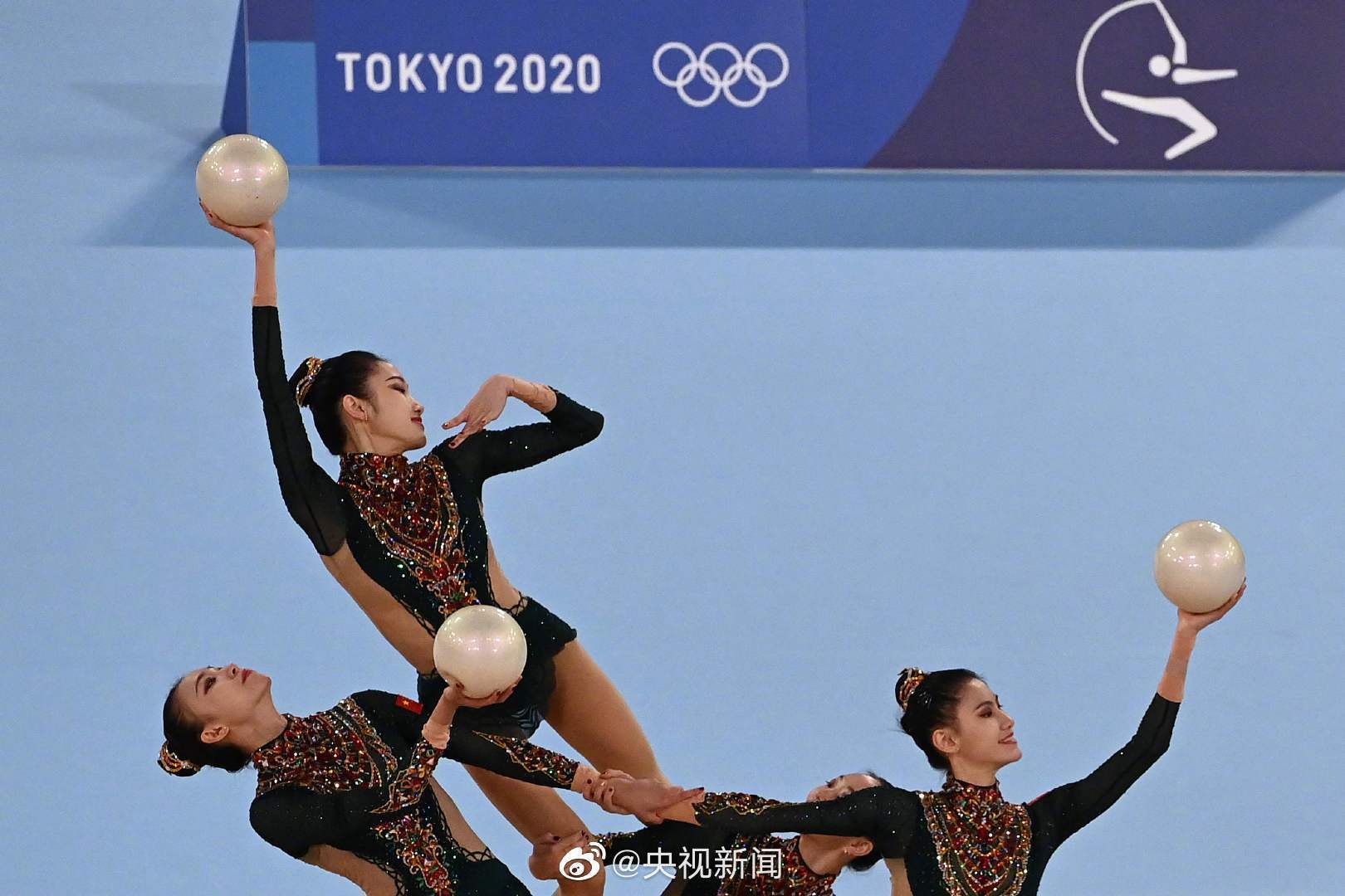 8日上午,东京奥运会艺术体操团体全能决赛正在进行!刚刚上场的中国姑娘们,在5球项目中的主题是敦煌飞天,整套造型动作令人赏心悦目。中国队该项得分是42.150,在八支进入决赛的队伍中暂时列第七。网友:是中国人的浪漫!姑娘们继续加油!