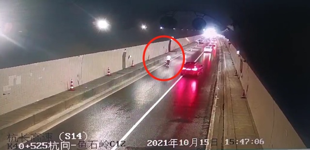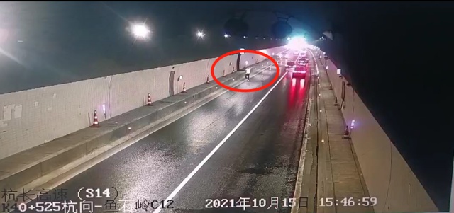 10月15日,浙江杭州S14杭长宜高速杭州方向鱼石岭隧道内,一辆京Y小轿车行驶到隧道内时车辆发生了故障,车辆失去动力,驾驶员利用惯性将车辆停在左侧车道边。因为隧道内没有路肩,右侧车道走的都是大车,当时的情况可以说还是很危险的。