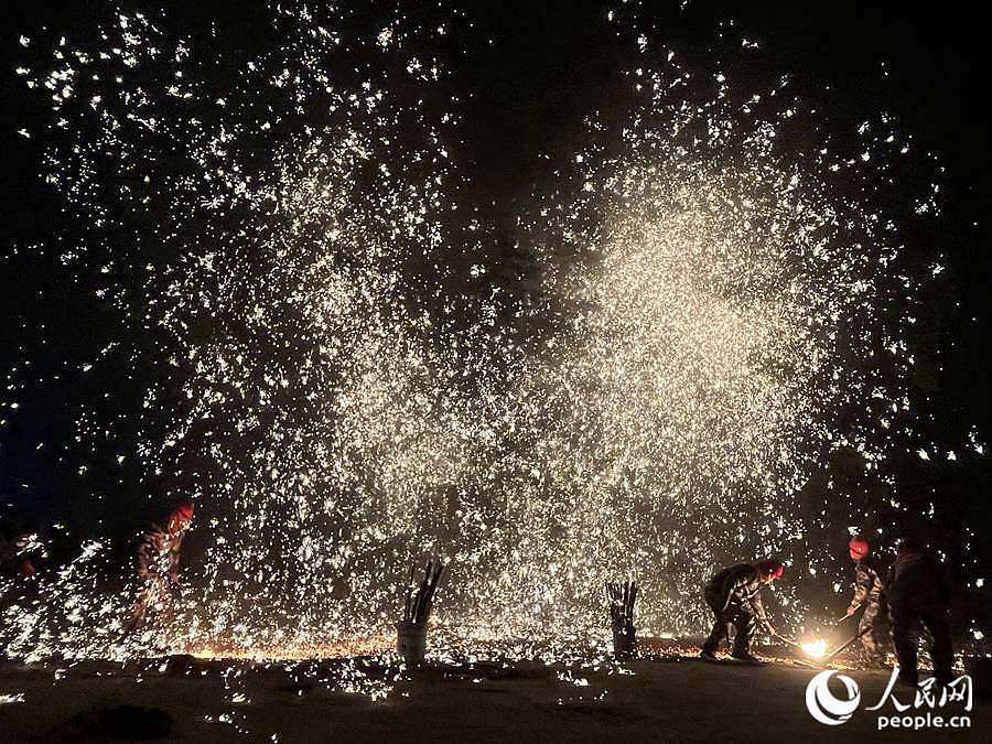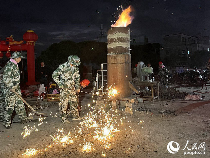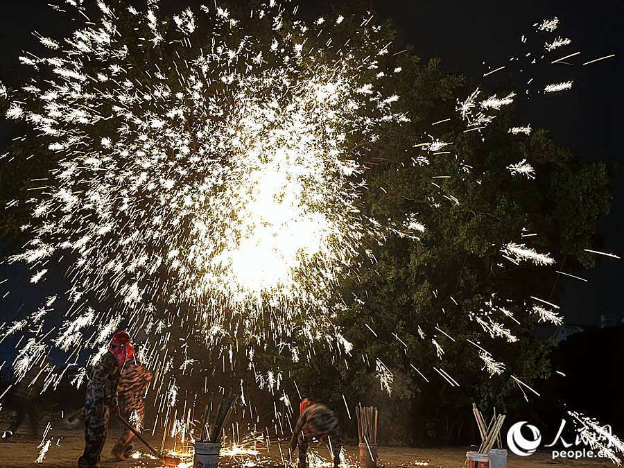 溶铁作水水生金,泼向庭树尽银花。正月十一,一场璀璨夺目的“火树银花不夜天”表演在福建莆田荔城区新度镇锦墩村举行。