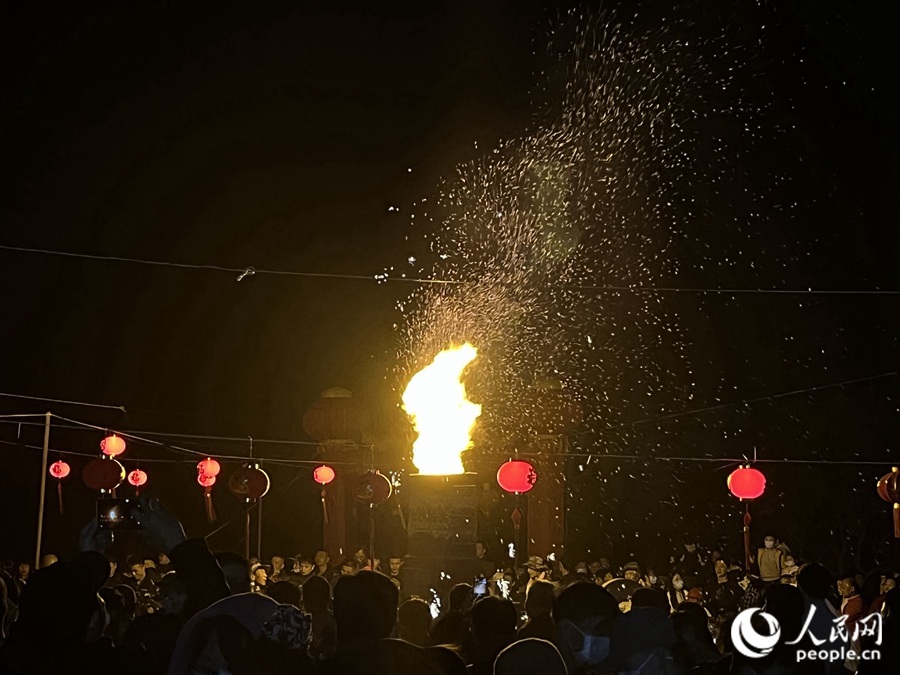 “这项传统技艺表演的形成与旧时村民多以打铁铸鼎为业息息相关。”锦墩村壶山砂花技艺传承人陈银洪介绍,由于铸鼎时飞溅的铁砂火花十分美观,艺人们因此产生灵感,发明了独特的“壶山砂花”。此后,这一技艺被运用到元宵传统节日的庆祝仪式中,代代相传至今。