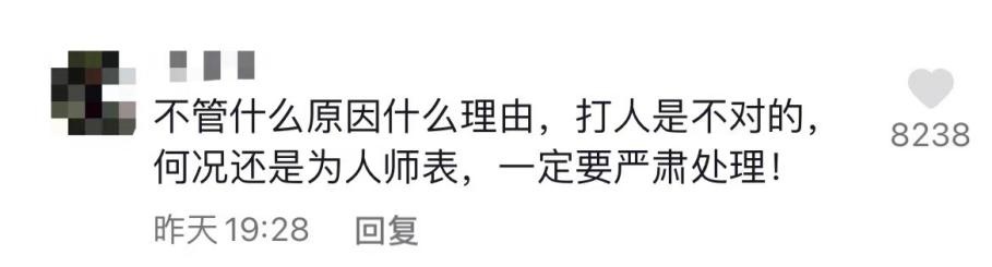 该事件受到了大量网友的关注。有网友称:“不管是什么原因什么理由,打人是不对的,何况还是为人师表,一定要严肃处理!” 还有网友认为:“不管怎么样,孩子都是青春期,自尊心正强的时候,万一想不开怎么办。”网友表示:“请有关部门把后期处理告知一下。”