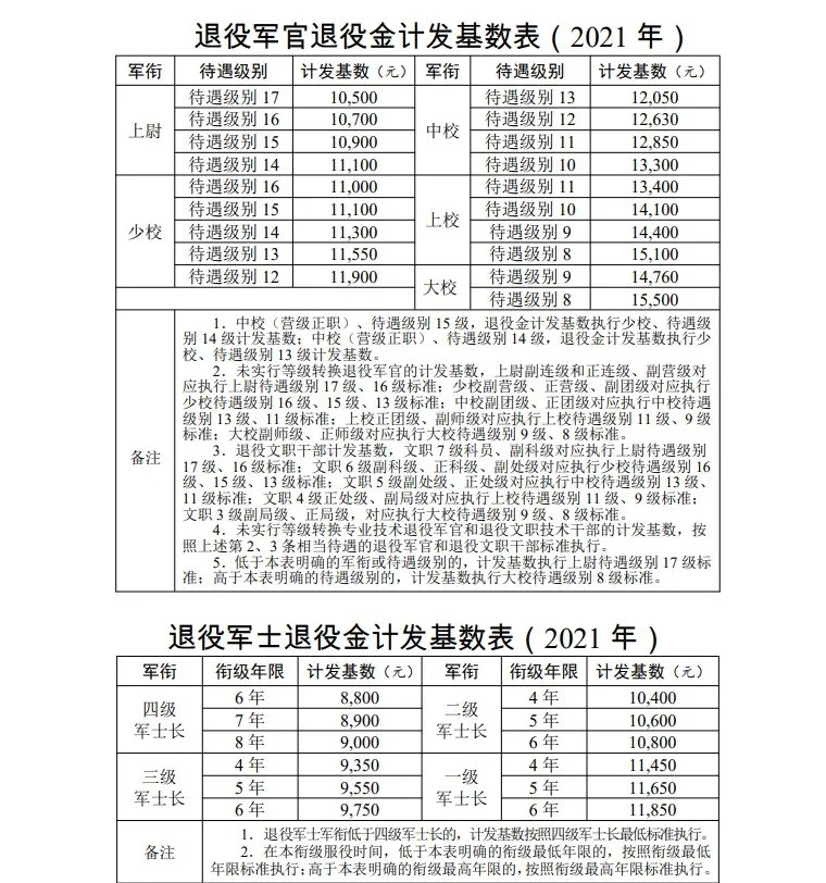 退役金根据担任军官、军士年限,按照计发基数一定比例确定,具体计发比例按照下列规定执行: