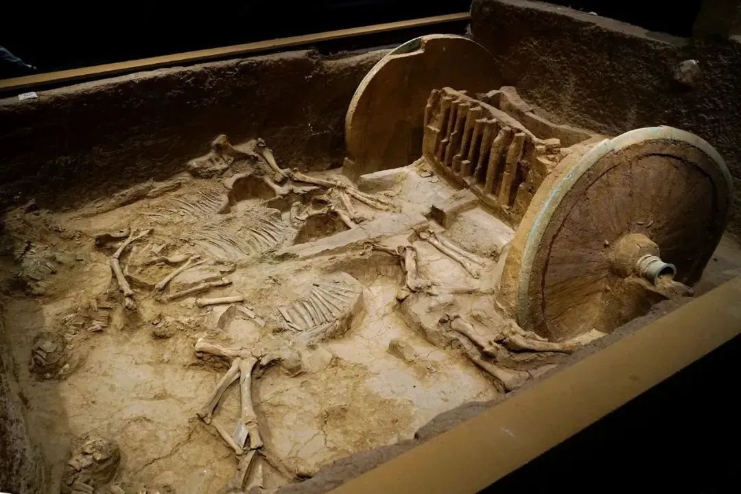 博物馆中还有多件以全新理念和先进技术进行保护修复的展品,比如通过浇灌石膏液体获得完整形态的周代木俑、历经千年真颜永驻的唐代牵驼俑,还有整体“打包”后完整搬进博物馆的西周车马坑。