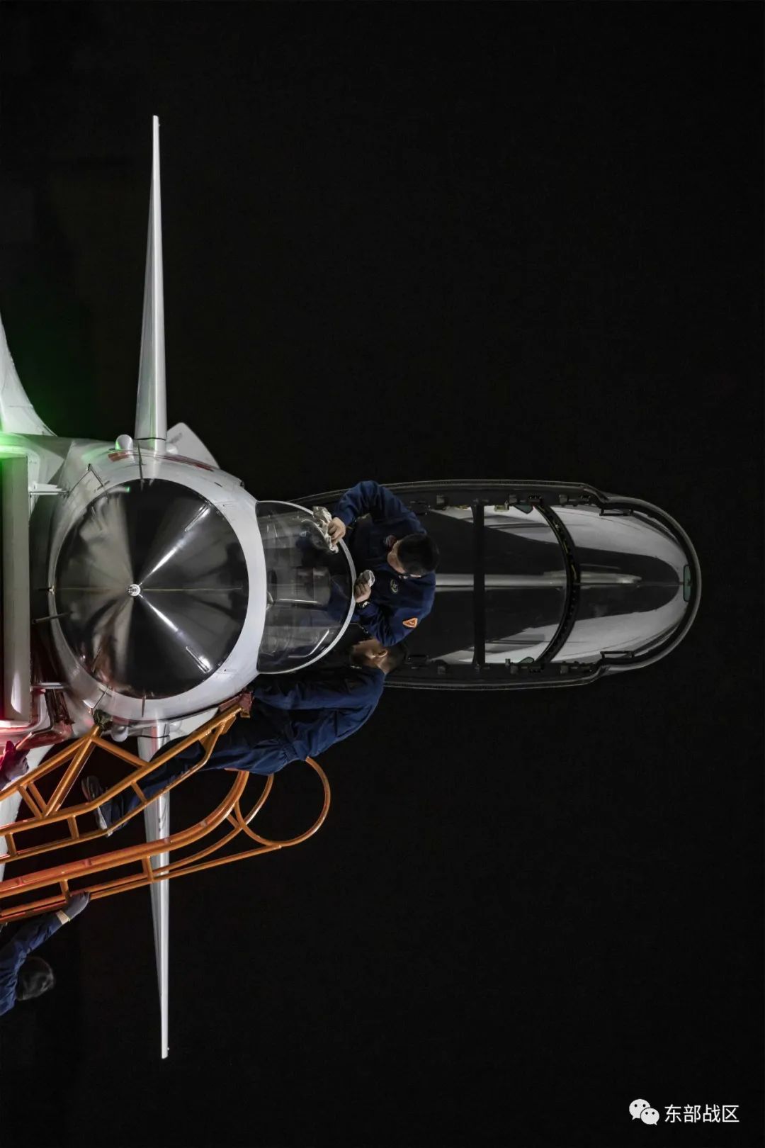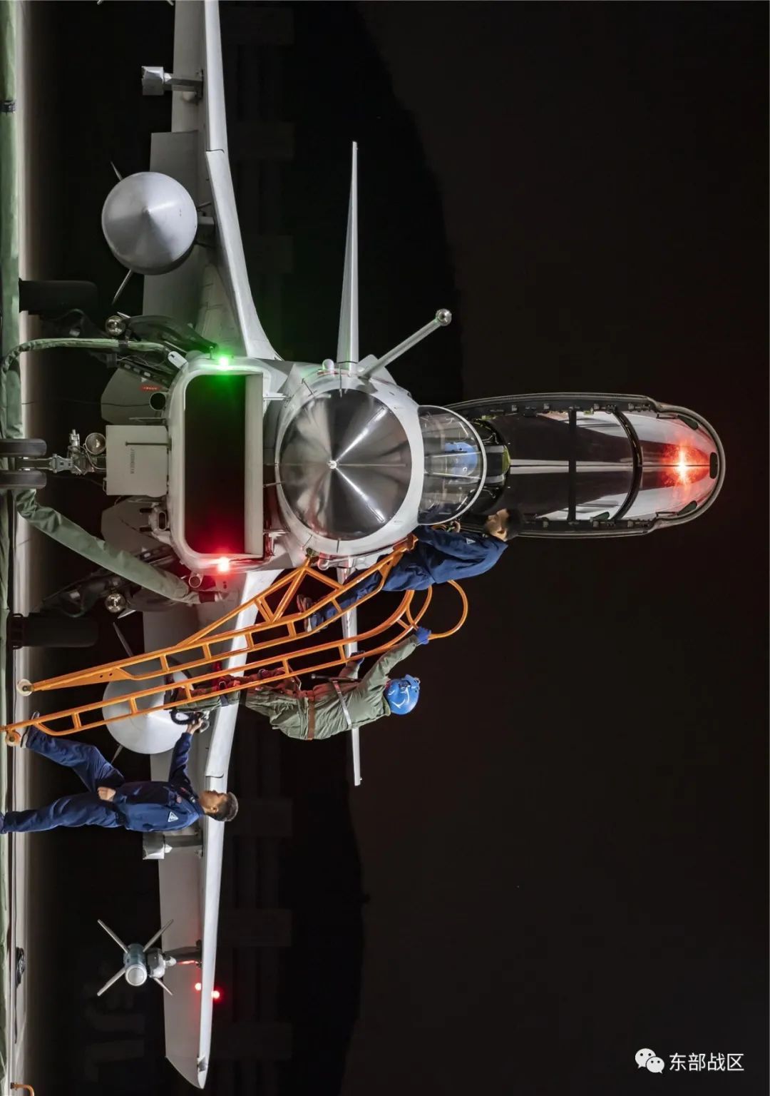 下半夜训练结束,机务官兵认真检查战机