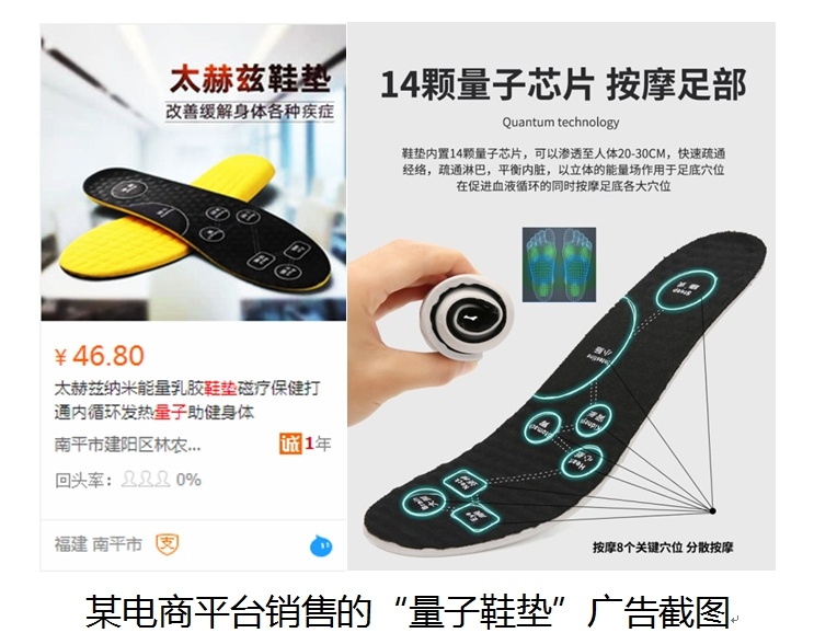 号称能“改善缓解身体各种疾病”、“打通内循环”,或是叠加“量子能量”“负离子”“太赫兹”的量子保健品、量子鞋垫、量子水杯、量子内裤等产品,真的如商家吹嘘般神奇吗?今天上午,中消协发布消费警示称,市面上销售的所谓“量子产品”其实是伪科技,炒作的神奇功效实为虚假宣传。