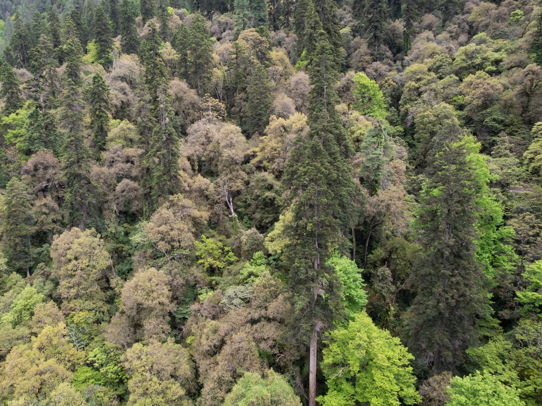 青藏高原二次科考“森林和灌丛生态系统与资源管理”专题的中国科学院植物研究所郭柯团队近日在西藏察隅县考察时,发现了成片高大的云南黄果冷杉原始森林。经无人机吊绳多次测量,其林冠高度达70米,最高的一株高度83.2米、胸径207厘米,高度超过了此前曾报道的位于西藏的不丹松(76.8米)和位于台湾的台湾杉(81-82米),刷新了中国最高树纪录。