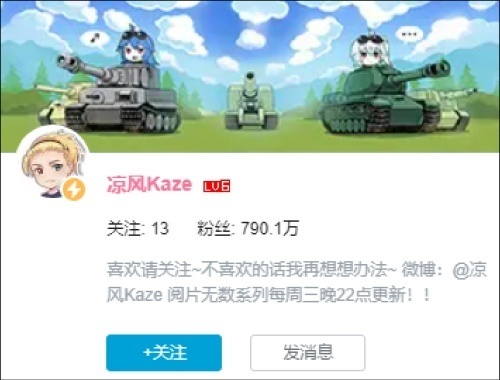 公开资料显示,“凉风Kaze”是B站2019、2020年百大UP主,在B站上拥有近800万的粉丝。