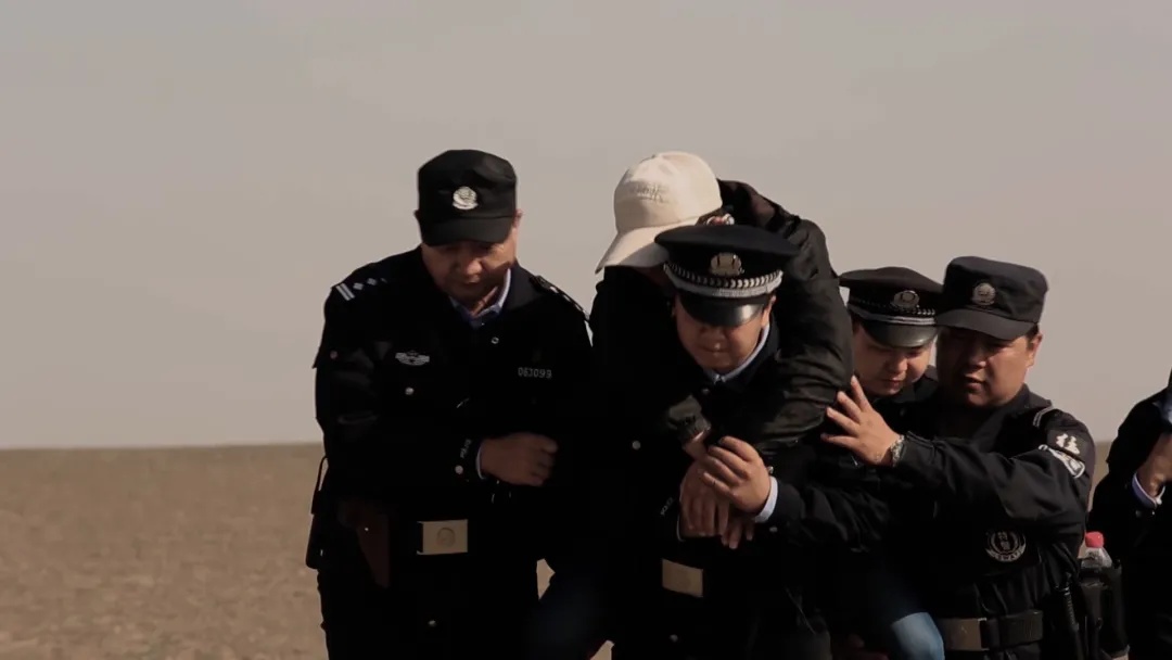 派出所的民辅警们顾不得被风吹倒、被沙击打,迎着风沙向大漠深处走去……