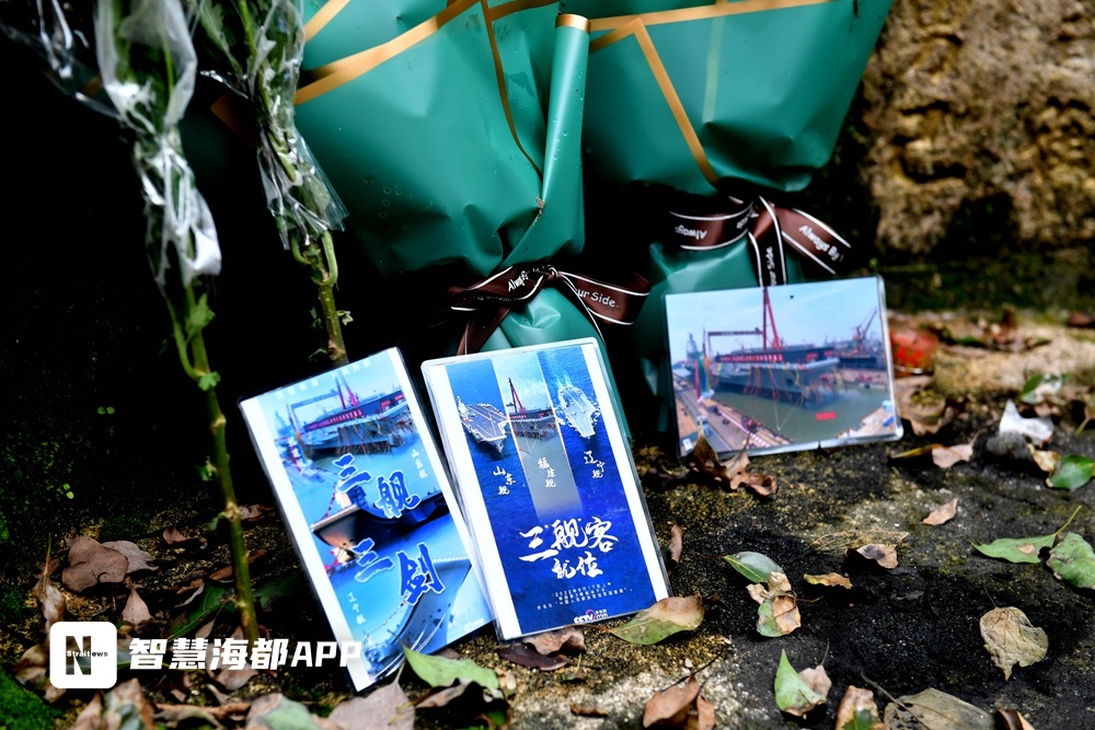 19日下午,记者探访沈葆桢墓、萨镇冰墓。两位海军先辈的墓前,均被放上了鲜花和“福建舰”航母的照片。在沈葆桢的墓前,除了一张“福建舰”照片外,还有两张中国航母集结照。照片上分别带有“三‘舰’客就位”“三舰三剑”的字样,并配有辽宁舰、山东舰、福建舰的图案。记者注意到,最近福州连日下雨,而这些照片都经过精心准备塑封处理过的,内部不会被雨水淋湿。