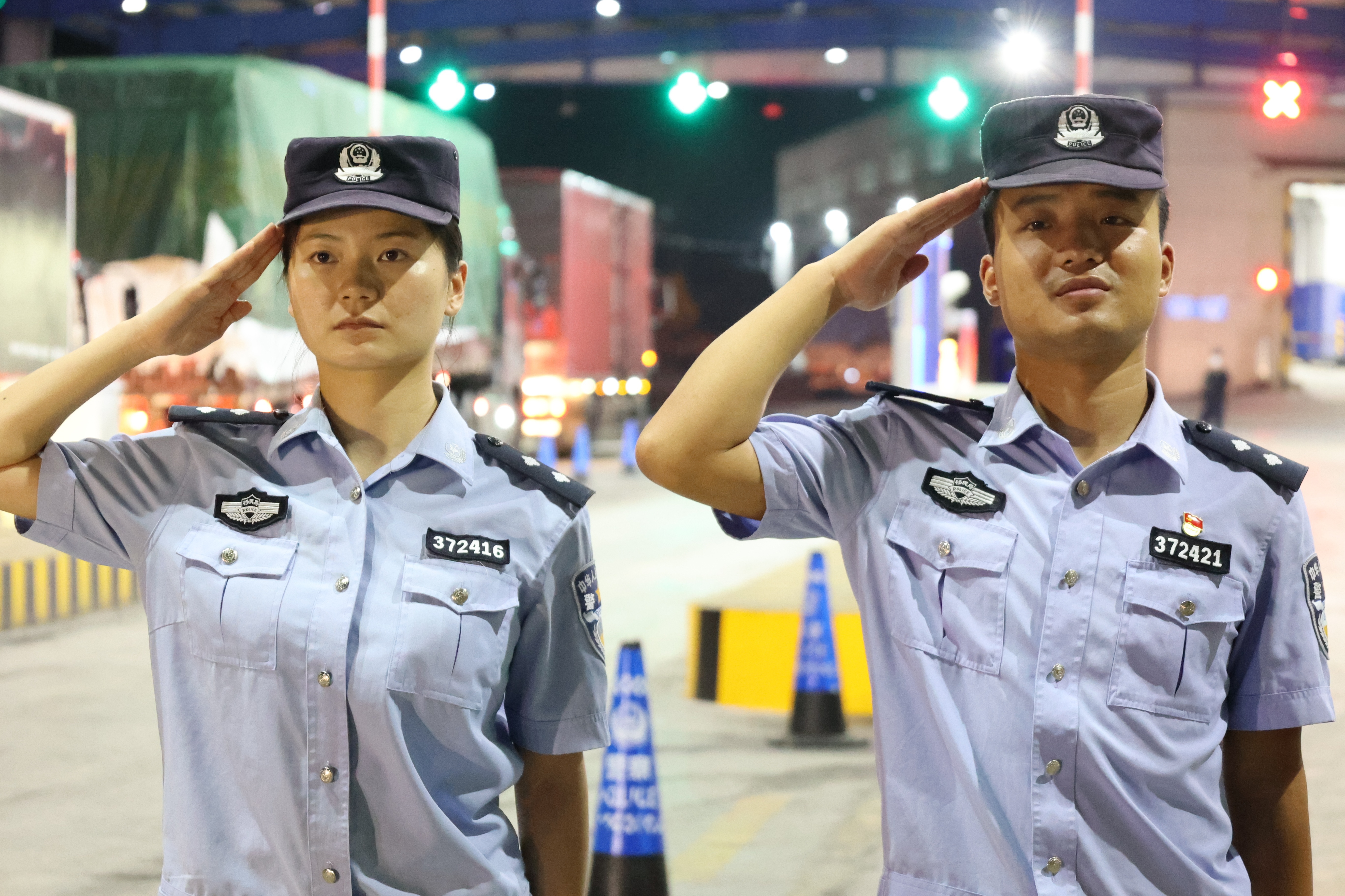 轮训结束后,胡亦江和左丽婷回到了芒颜边境检查站。虽然两个人在同一个单位,但是因为任务不同,两个人很少能见面。“每天除了吃饭的时候,大部分时间只能穿着防护服隔着很远看看对方。”胡亦江说。芒颜边境检查站繁重的勤务,加上疫情防控、边境管控带来的压力,驻守在这里的移民管理警察每天都要在日均气温38度的大热天里忙个不停,看着胡亦江在物流车里紧张的忙碌,脱下防护服时汗如雨下,左丽婷倍感心疼,但她一直鼓励胡亦江要冲锋在前。