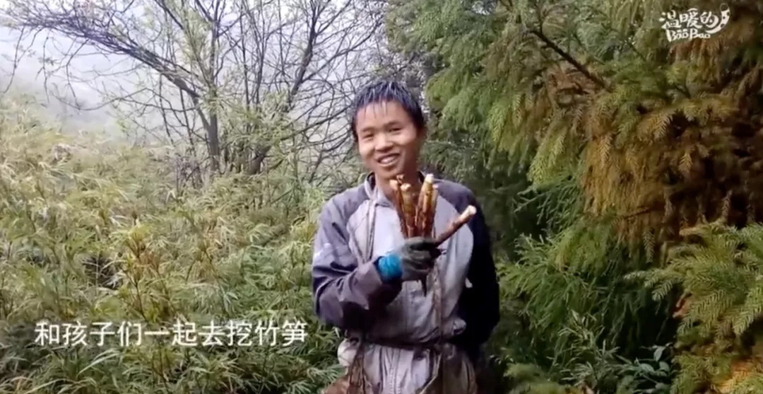 他鼓励孩子们干农活儿,和他们一起去挖竹笋。他告诉孩子们,不要觉得自己做的事情很脏、很没有尊严,这都是自己通过劳动得到的。他还告诉孩子:他把这些视频发到网上,有很多人给你们点赞。