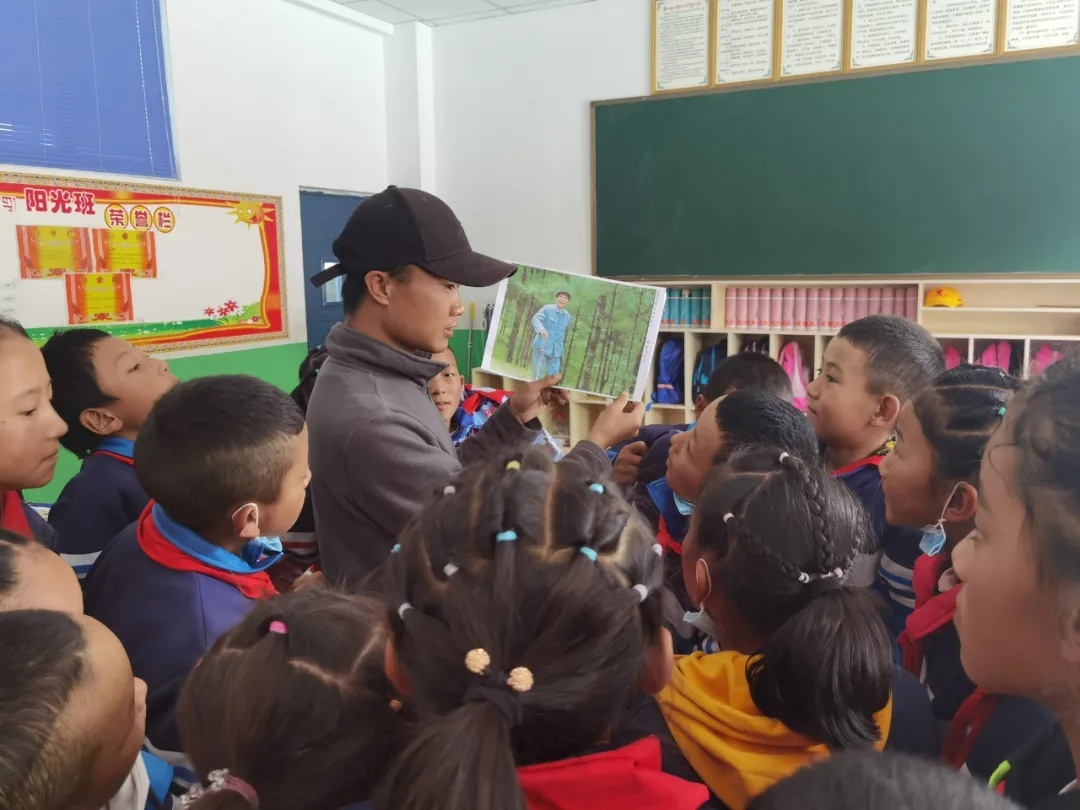 张银波组织开展“石榴籽——大手牵小手·云南西藏千里互通书信传党史活动”,并向小学生讲杨善洲植树的故事