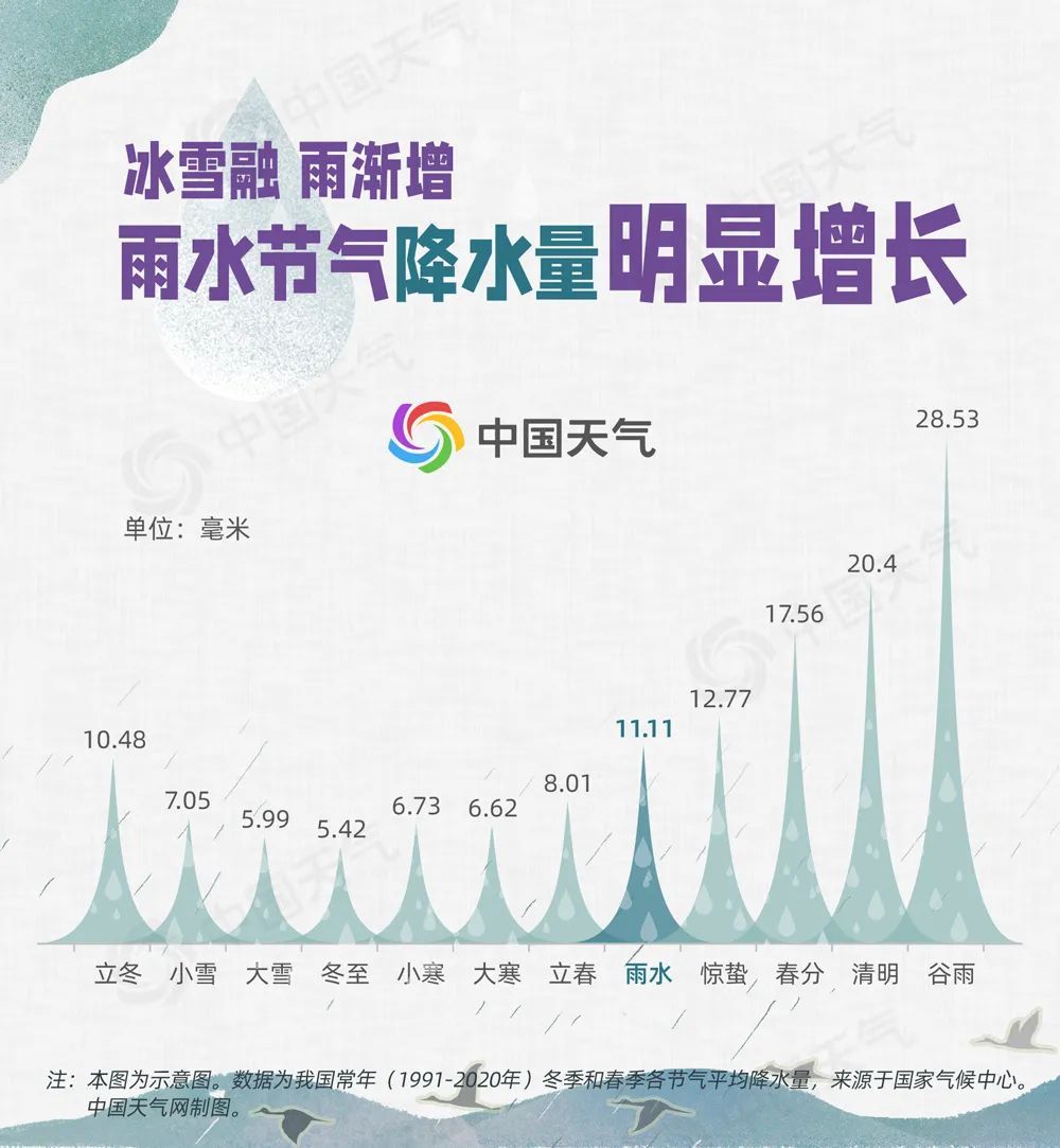 雨水节气有何气候特点?哪些城市最容易“遇雨”?今年雨水节气前期全国天气形势如何?