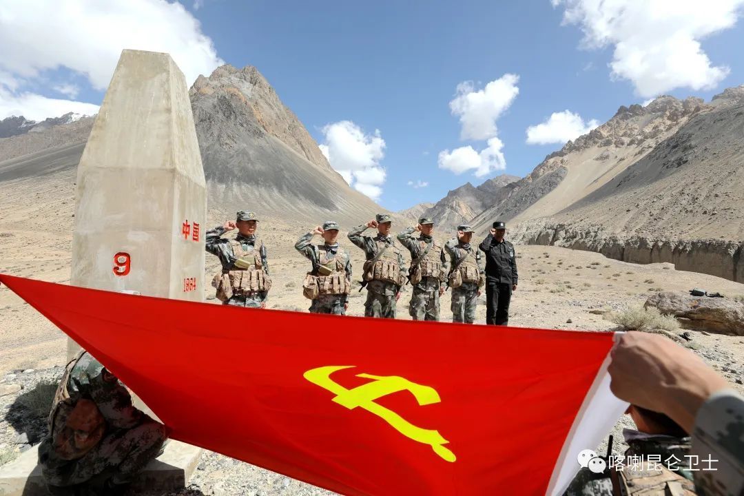 红其拉甫边防连,塔吉克语意为“血染的通道”。这里终年积雪,平均海拔4300米以上,是全军口岸海拔最高、边境线最长的边防连队。“八一”前夕,官兵们再次出发,挺进“死亡之谷”——吾甫浪沟巡逻。山势陡峭,路途艰辛,行至界碑前,他们面向党旗许下铿锵誓言:“寸土不丢,寸土不让,万里边疆我们守护。”
