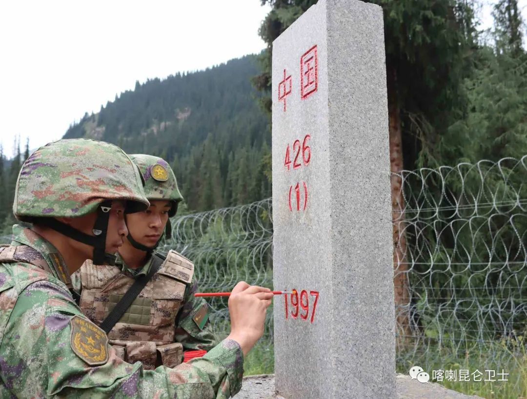 汗腾格里峰脚下的木孜边防连,被称为“冰川哨所”。官兵们常年守护着中哈边境426号界碑。在建军节来临之际,巡逻分队再次出发,完成长达13公里的徒步巡逻任务。到达界碑处,官兵们清除周边杂草,认真为界碑描红,用边防军人特有的方式,迎接属于自己的节日。