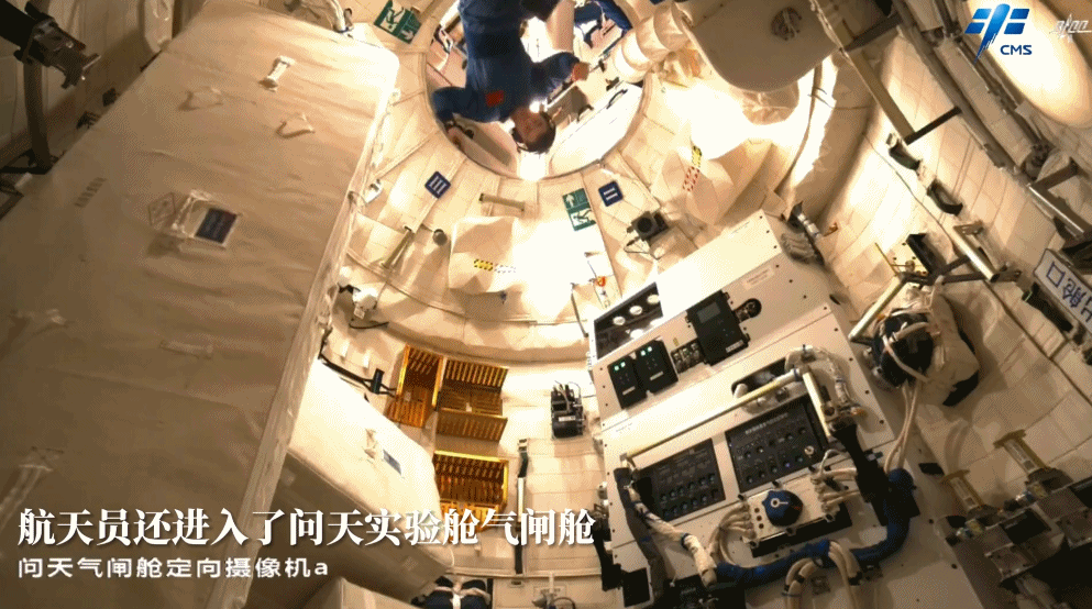 航天员进入了问天实验舱气闸舱,问天气闸舱较核心舱节点舱的内部空间更大,出舱口直径为一米,也比节点舱出舱口更大,未来航天员将从这里执行出舱任务,问天气闸舱也将成为航天员的出舱主通道。