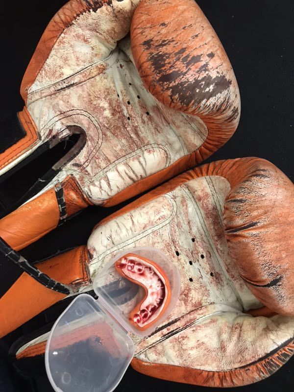 这是他训练用的手套和牙套