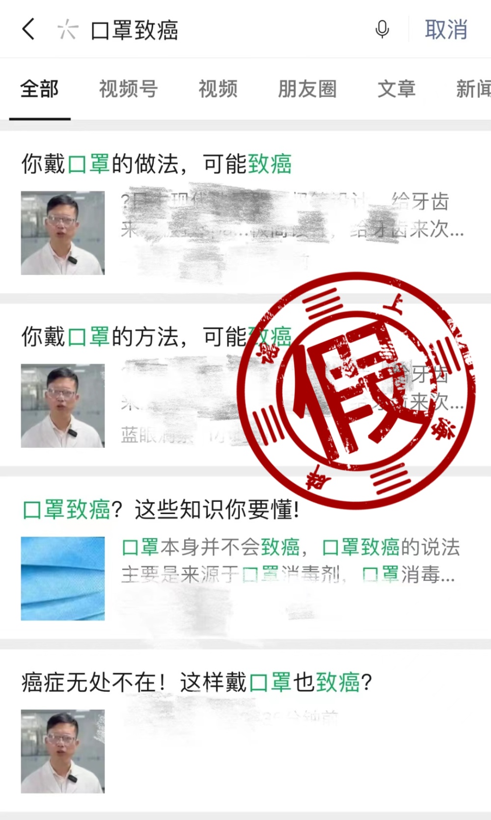 这两天,一段“口罩消毒残留物是一类致癌物质,用口罩前要抖一抖”的视频在网络上广泛流传,并被不少自媒体引用,声称“口罩致癌”。