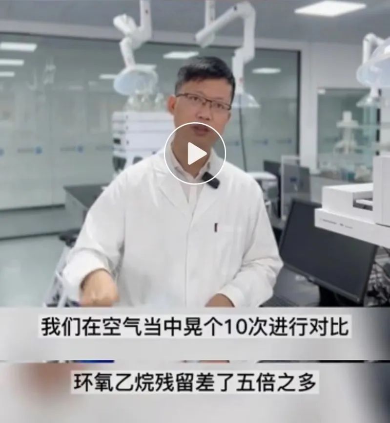 其次,视频本意是建议用户通过“抖一抖口罩”的方式进一步减少环氧乙烷残留量,而不是说不能使用采取环氧乙烷消毒的口罩。