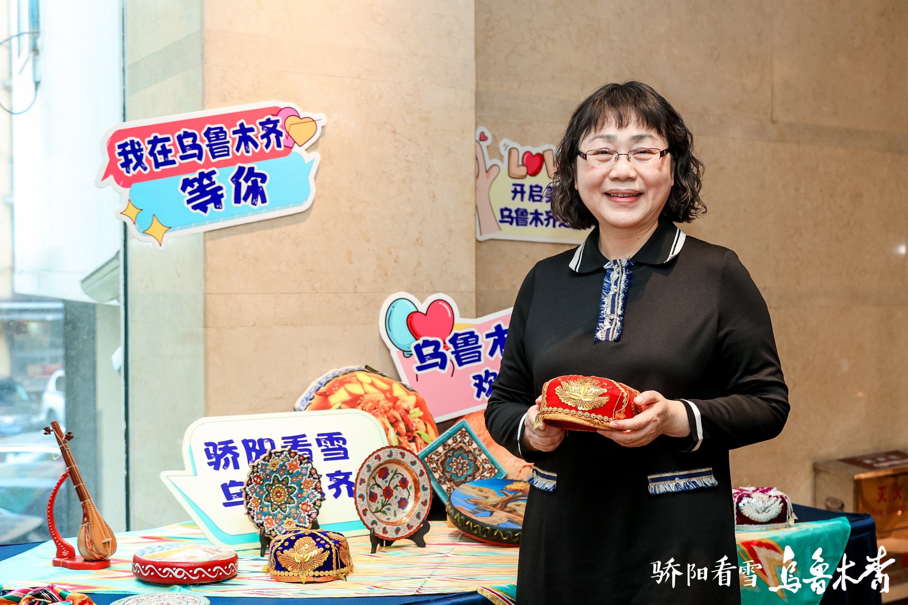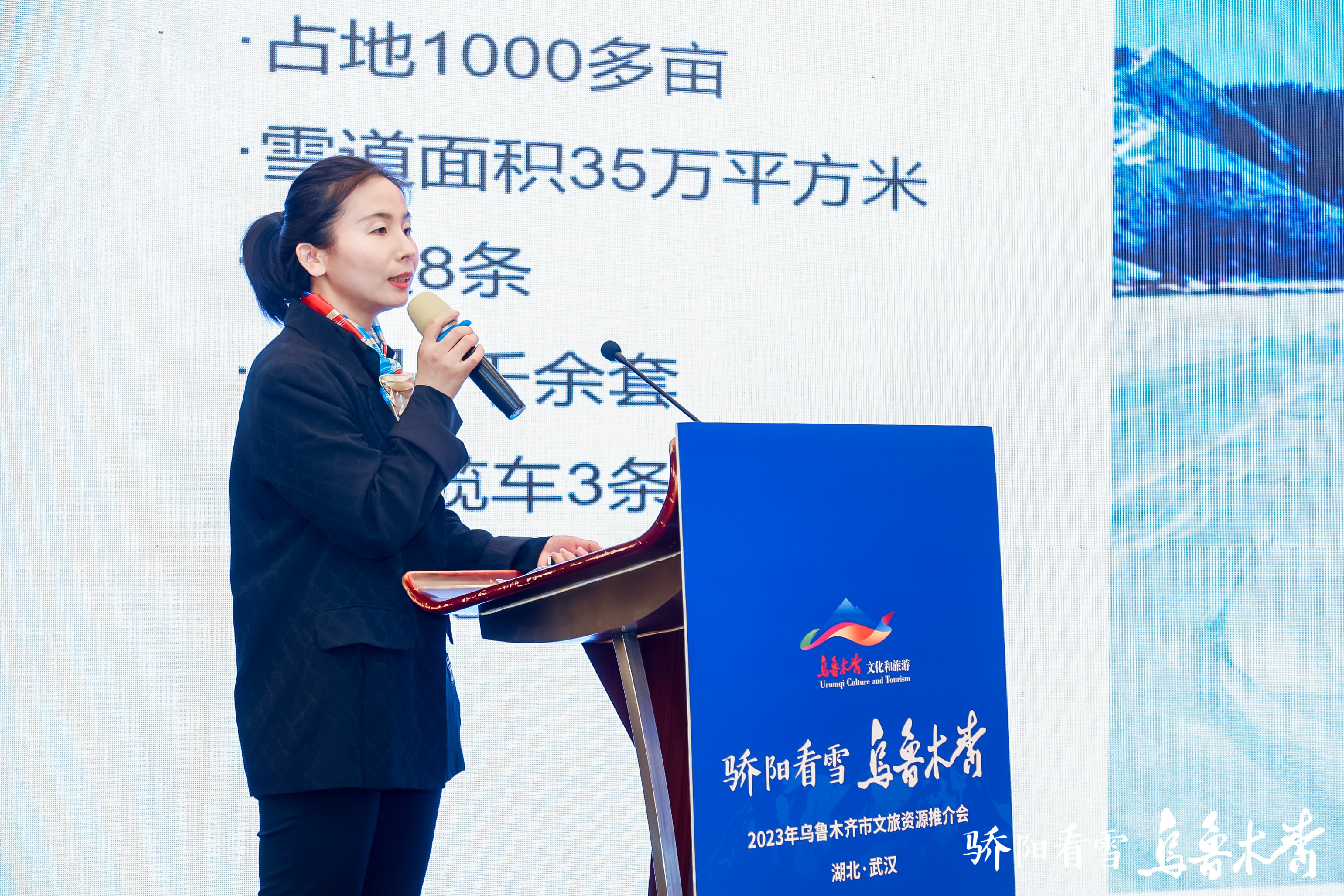 ▲新疆白云国际滑雪场副总经理凡兰兰推介冰雪旅游资源