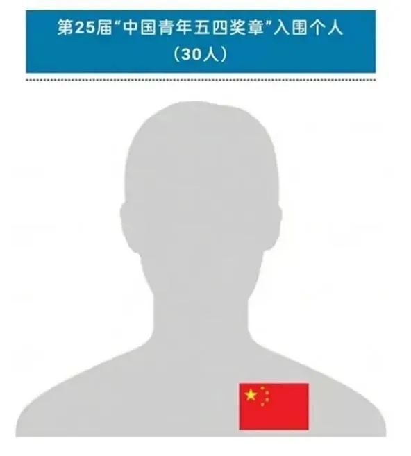 今年,第25届“中国青年五四奖章”入围名单中,一张肖像照刷屏网络。这张“照片”看不到五官和长相,只有一个模糊的轮廓和胸前的一面五星红旗,却让无数人动容。