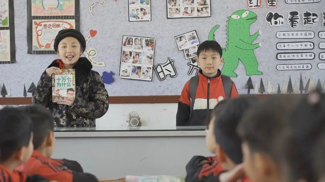 (甘棠镇中心小学学生进行好书推荐。龙力 摄)