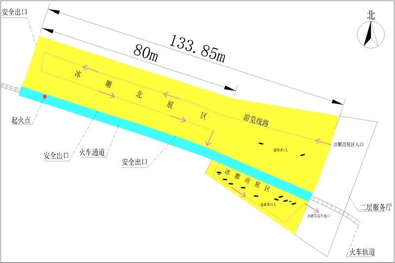 经现场勘验、调查询问、视频分析、技术鉴定及专家论证,调查认定引发火灾的直接原因是:当日景区10千伏供电系统故障维修结束恢复供电后,景区电力作业人员在将自备发电机供电切换至市电供电时,进行了违章操作,带负荷快速拉、合隔离开关,在景区小火车通道照明线路上形成的冲击过电压,击穿了装饰灯具的电子元件造成短路;通道内照明电气线路设计、安装不规范,采用的无漏电保护功能大容量空气开关无法在短路发生后及时跳闸切除故障,持续的短路电流造成电子元件装置起火,引燃线路绝缘层及聚氨酯保温材料,进而引燃聚苯乙烯泡沫夹芯板隔墙及冰雕馆内的聚氨酯保温材料。火势在风力作用下迅速扩大蔓延,产生大量高温有毒烟气。加之冰雕游览区游览线路设计复杂,疏散通道不通畅,部分安全出口被人为封堵,导致发生火灾时游览人员不能及时逃生,因一氧化碳中毒、呼吸道热灼伤、创伤性休克等原因造成人员伤亡。
