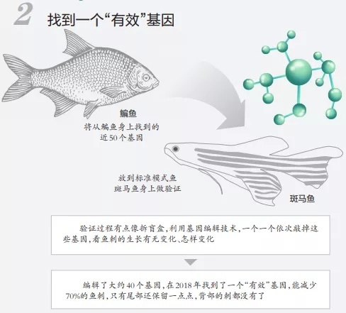 这次“乌龙”让高泽霞更加谨慎。他们编辑了大约40个基因,终于在2018年找到了一个“有效”基因,能减少70%的鱼刺,只有尾部还保留一点点,背部的刺都没有了。