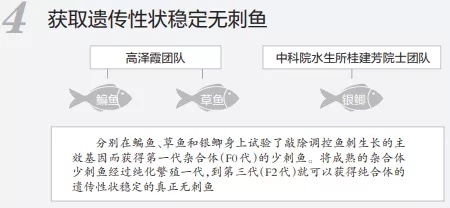 武汉的鳊鱼两年一成熟,鲫鱼一年一成熟,再将这些成熟的杂合体少刺鱼经过纯化繁殖一代,到第三代(F2代)就可以获得纯合体的遗传性状稳定的真正无刺鱼。