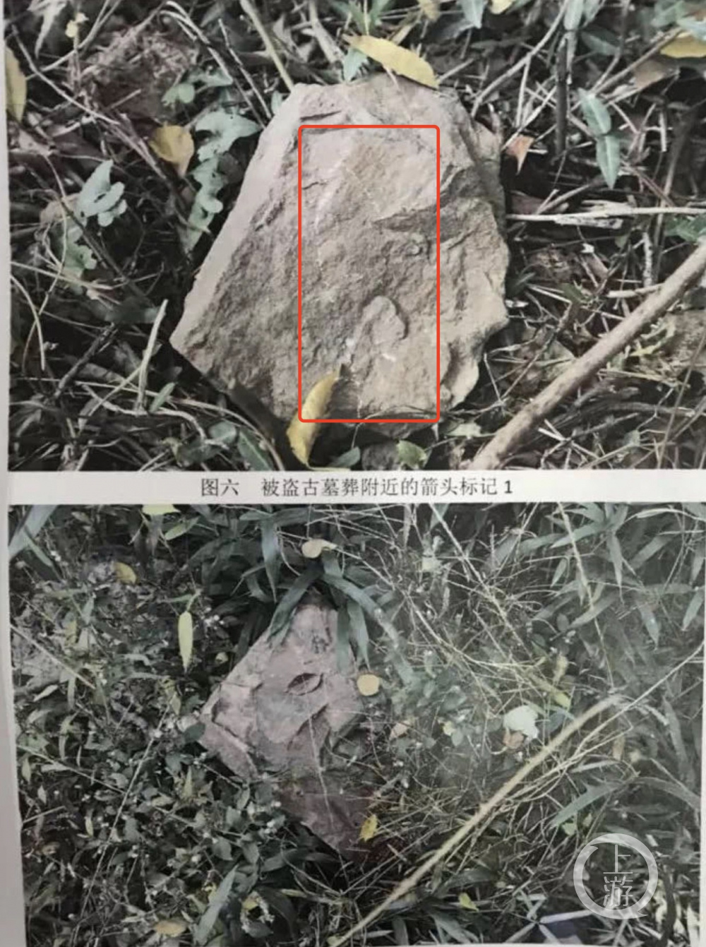 ▲2018年6月,苏州警方在横山山顶发现被盗古墓附近的石头上有箭头标记。