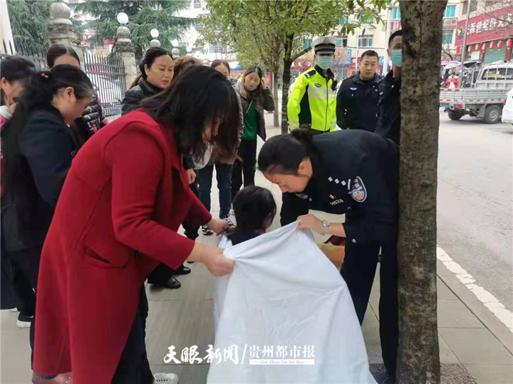 11月11日上午,贵州凤冈县龙泉镇韩女士在街头突然临产,正在痛苦无助时,遇上巡逻的龙泉派出所女民警周海虹,她即刻变身为一名临时“助产士”,与热心群众一起,帮助妇女顺利产下一名女婴。