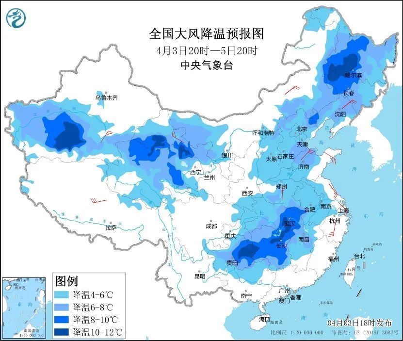 今明两天,受较强冷空气影响,我国大部地区气温将下降4~8℃,中东部地区迎来大范围雨雪天气。