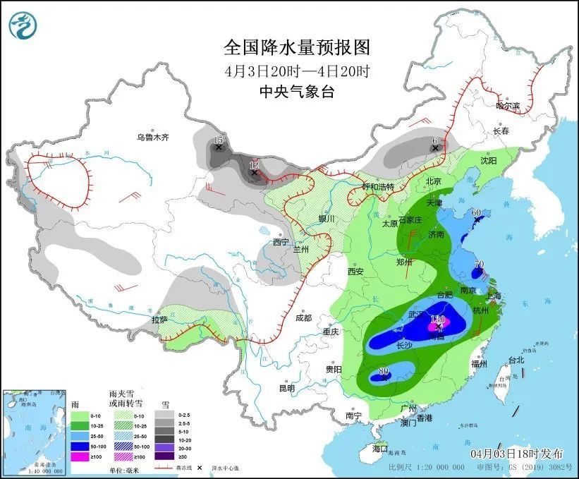 今日天气:新疆南疆高海拔山区、内蒙古中西部、西藏东部、青海东部和北部、甘肃大部等地部分地区有小到中雪或雨夹雪,其中,内蒙古中部和西北部等地局地有大到暴雪。山东半岛、江苏大部、安徽东部和南部、湖北东部、湖南南部和北部、江西中北部等地部分地区有大到暴雨,其中,江西北部的部分地区有大暴雨。