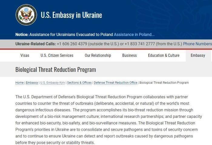 美国驻乌克兰大使馆网站对“生物威胁降低项目”的介绍。图片来源:美驻乌使馆网页截图。