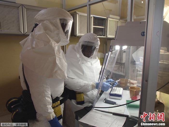 美国马里兰州德特里克堡的陆军传染病医学研究所技术人员,在实验室里进行化验。