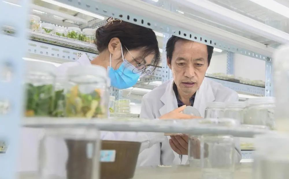 5月5日,包满珠(右一)在实验室指导学生培育新品种。新华每日电讯记者程敏摄