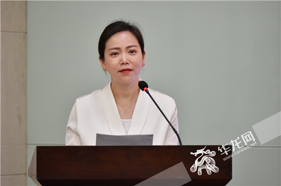 华龙网集团党委书记、董事长李春燕介绍“全国主流网络媒体重庆教育行”开展情况。周涛摄