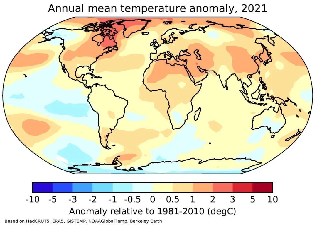 ©气象组织图片|2021年全球平均气温图