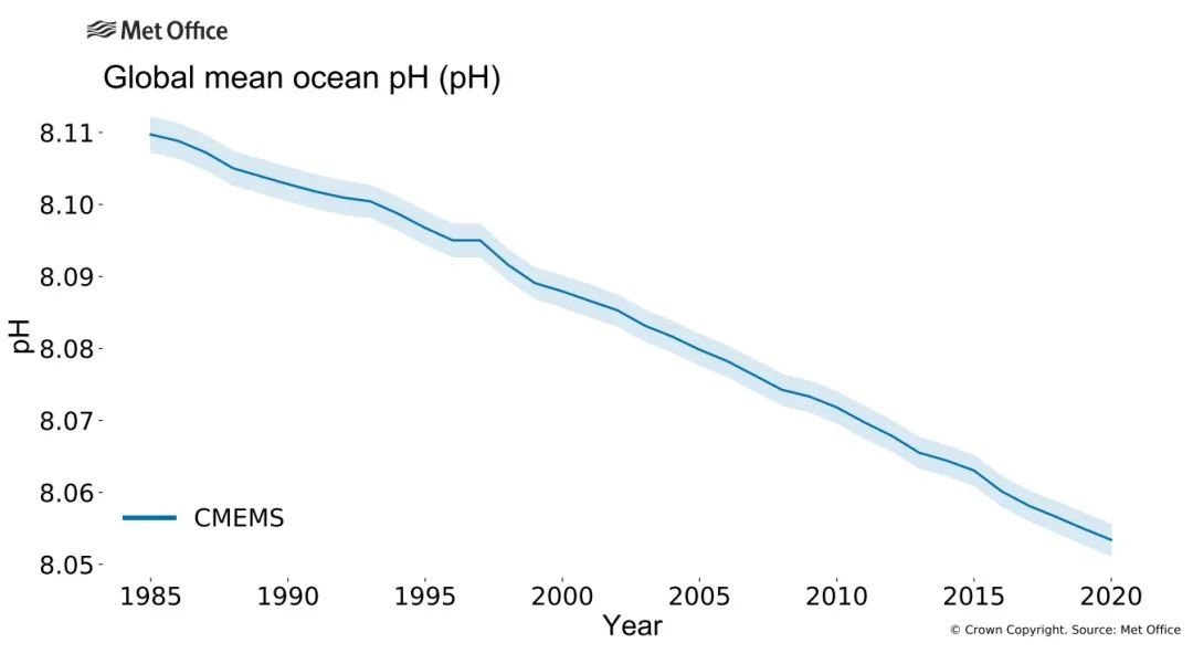 ©气象组织图片|全球海洋平均酸度变化趋势