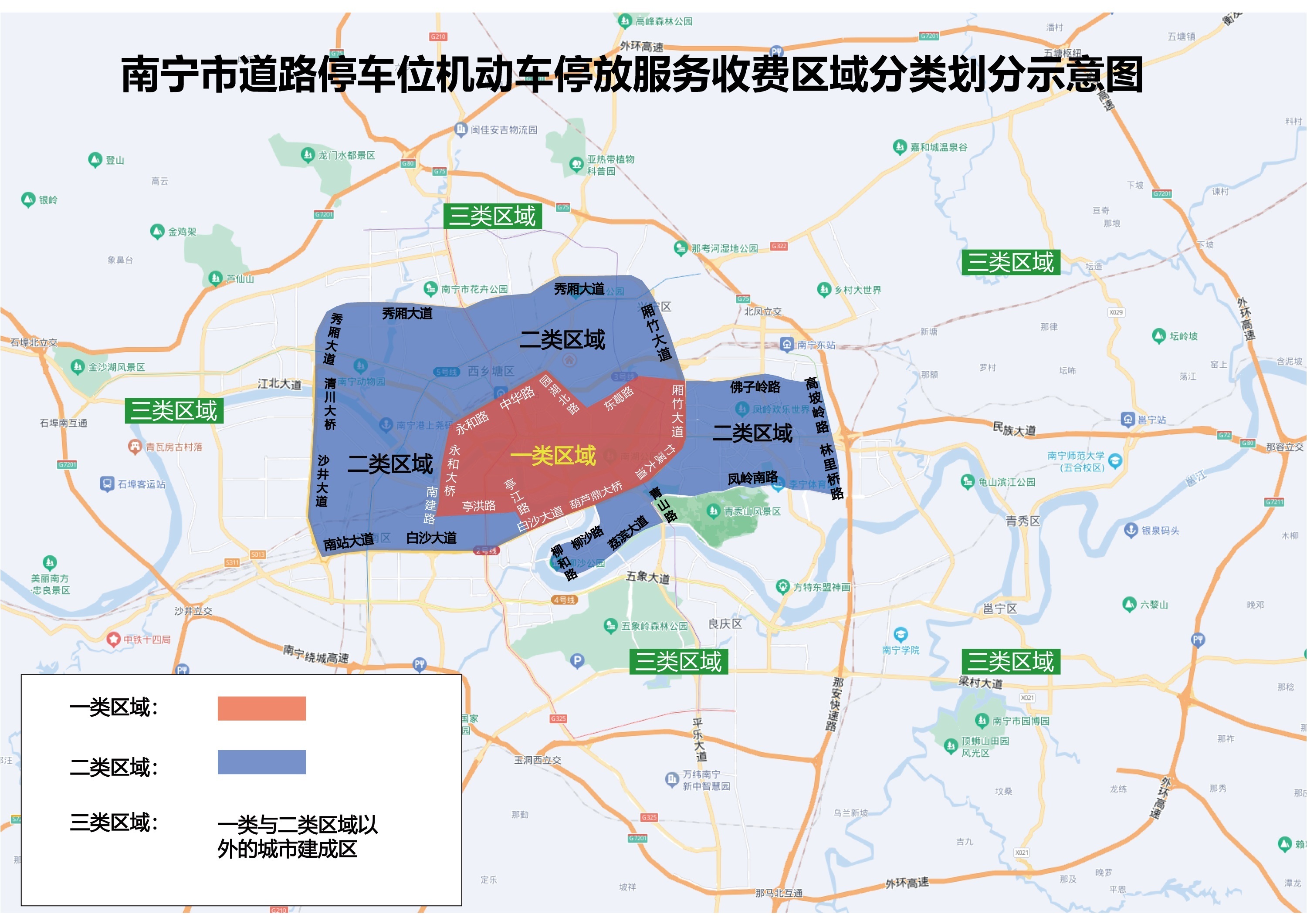 南宁市道路停车位机动车停放服务收费区域分类划分说明