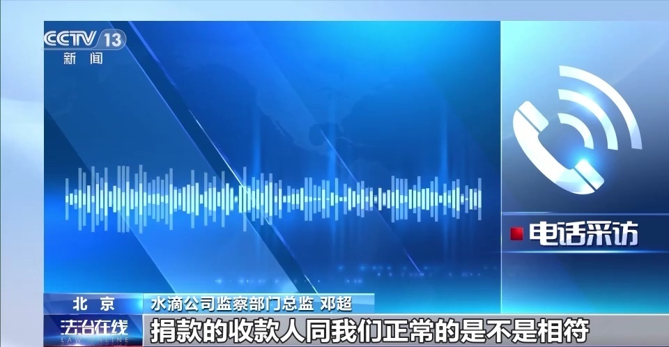 水滴公司监察部门总监 邓超:一方面我们告诉他,首先这个链接是假的,第二我们也会从数据库里来看,是不是真实有这个案例存在,以及这个案例捐款的收款人和我们正常的是不是相符。