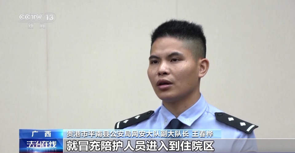 广西贵港市平南县公安局乐群派出所副所长 潘官华:相关的报案人员也是反映,他们的亲属在医院里面住院治疗期间,有一些自称是众筹平台工作人员,他们也戴有工作牌,进到医院病房里面说自己是专门来做爱心的。